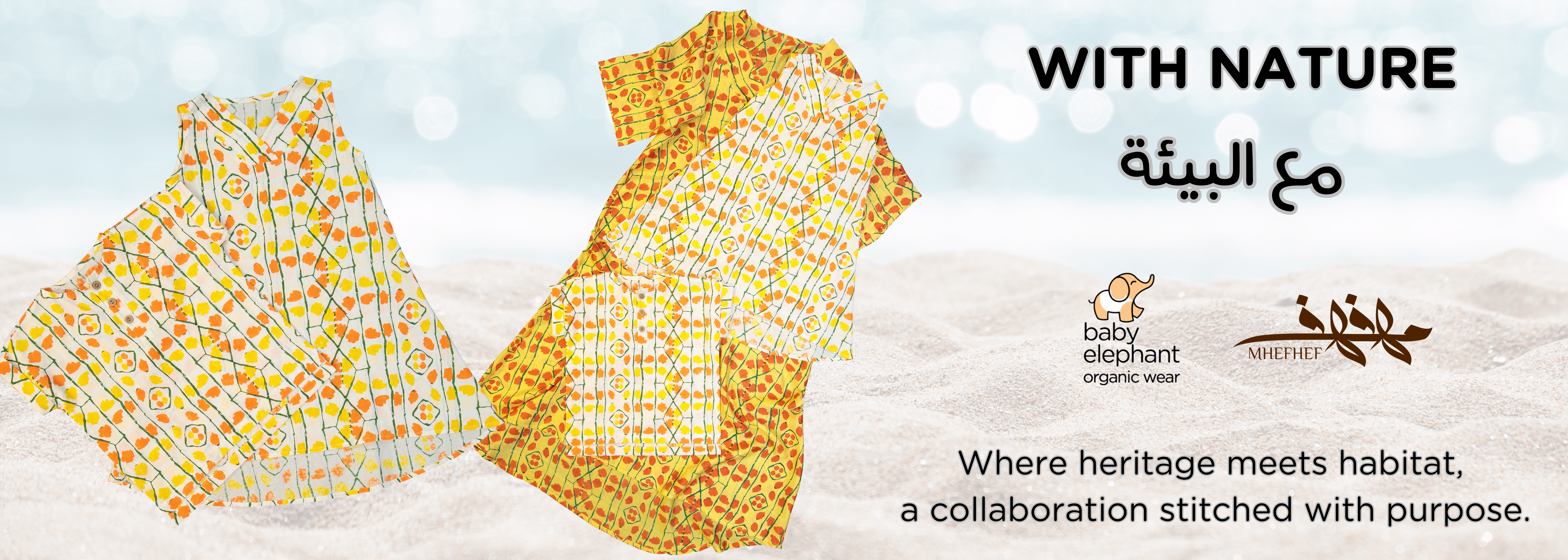 A limited edition, made in collaboration with Mhefhef by Mashael Al Nuaimi, featuring handmade prints, inspired by the endangered Hawksbill sea turtle, one of Qatar's pioneering marine conservation efforts since 2003. Designs are lightweight and loose, elegant and comfortable.